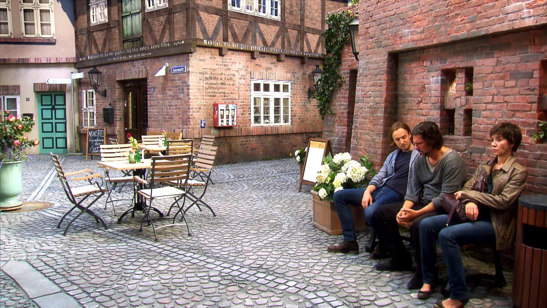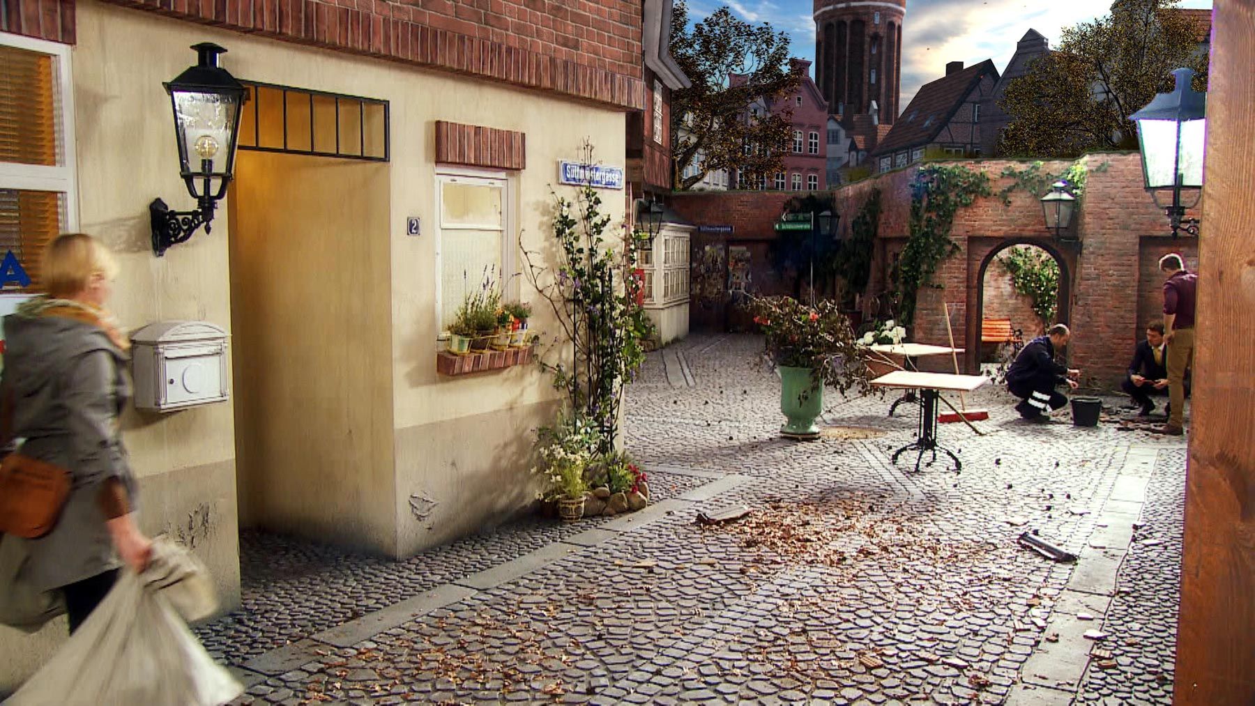 Die Besonderheit ist, dass der Marktplatz nur im Studio existiert und digital erweitert wurde.
